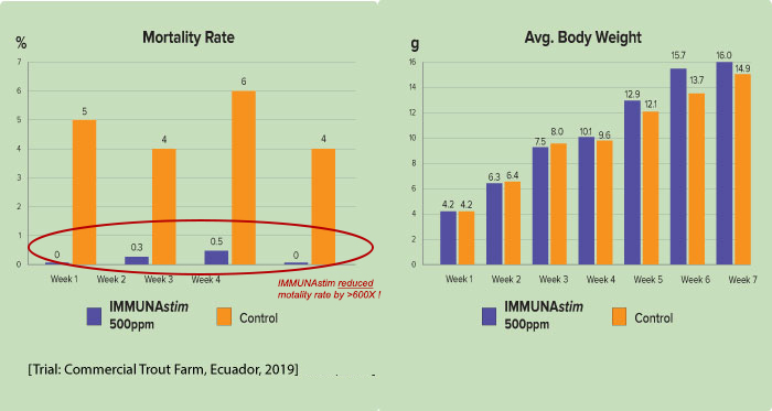 Results: IMMUNAstim improves survival rate and ADG in fingerlings.