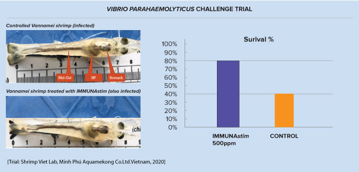 For Vannamei shrimp, IMMUNAstim displays strong inhibition on Vibrio parahaemolyticus..